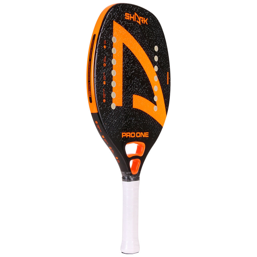The Shark Pro One Beach Tennis Racquet is made of carbon frame technology and FG fiber layer control. A medium-power racket, with a rugged 14-hole surface, suitable for intermediate players.
